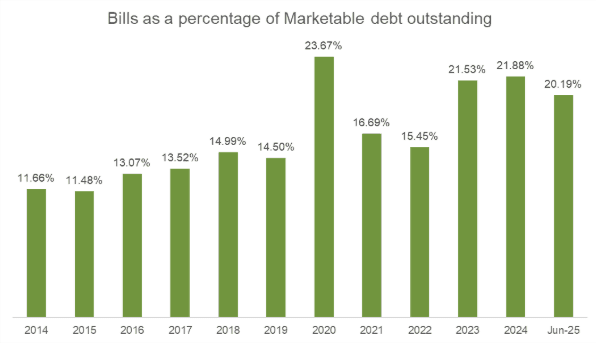 Looking at the data and just the outstanding debt, we now have bills around 20% of the marketable debt securities, which is still high and stimulative but seems to be normalizing. We need to continue to monitor the net issuance profile, which is what NINA does.